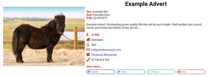 **Please note website addresses will not be place on adverts unless you are a Web Link subscriber of shetland-pony.com**